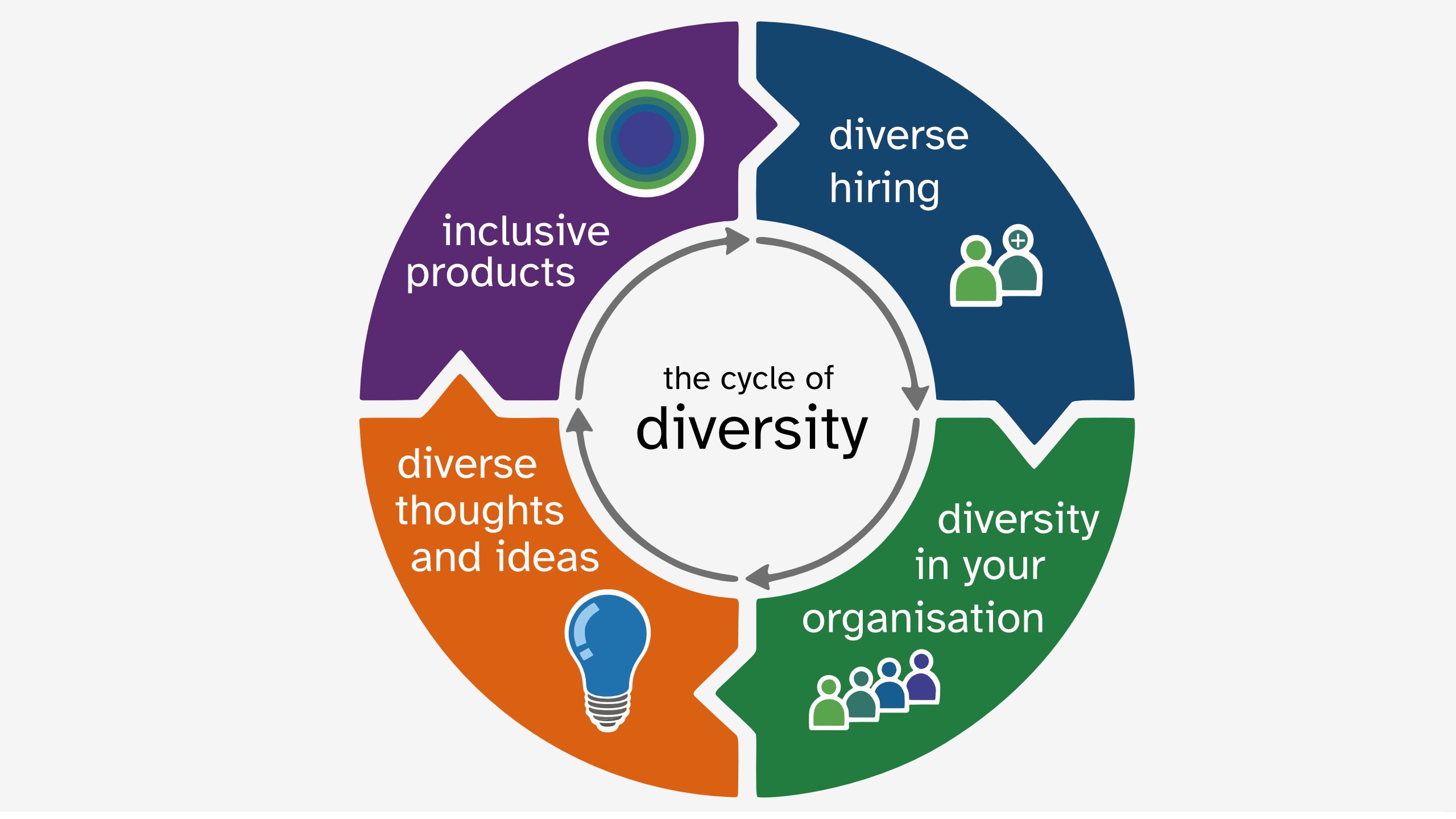 Hiring diverse people leads to diversity in your organisation. Diversity in your organisation leads to diverse thoughts and ideas. Diverse thoughts and ideas lead to inclusive products. Inclusive products enable hiring diverse people.